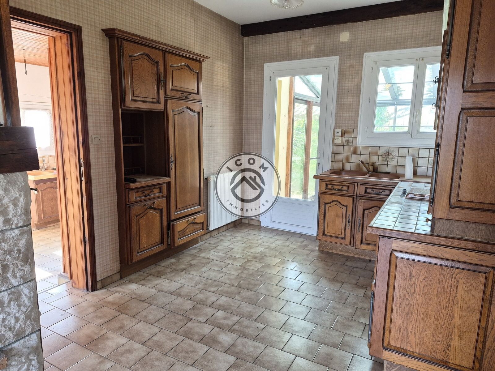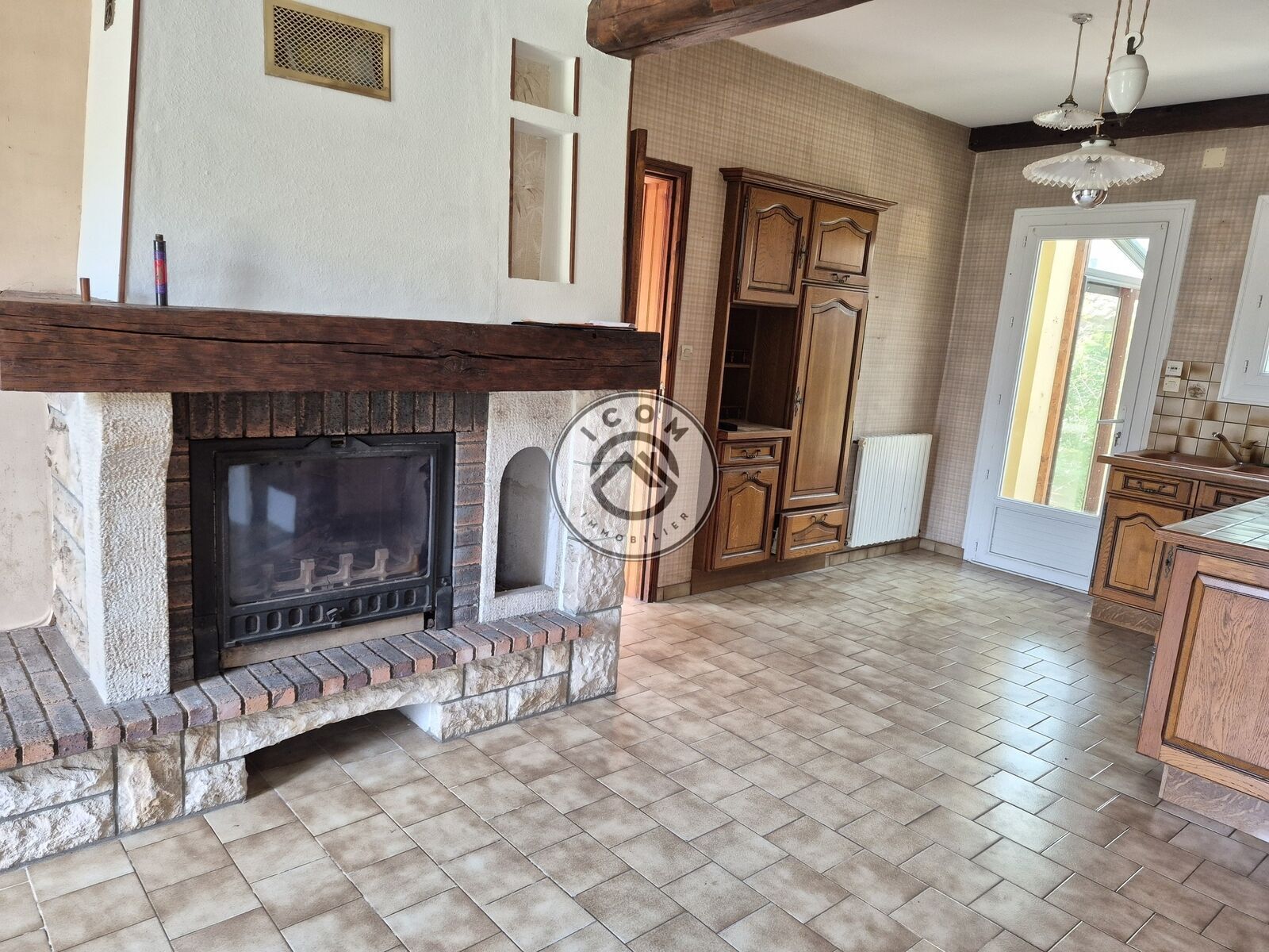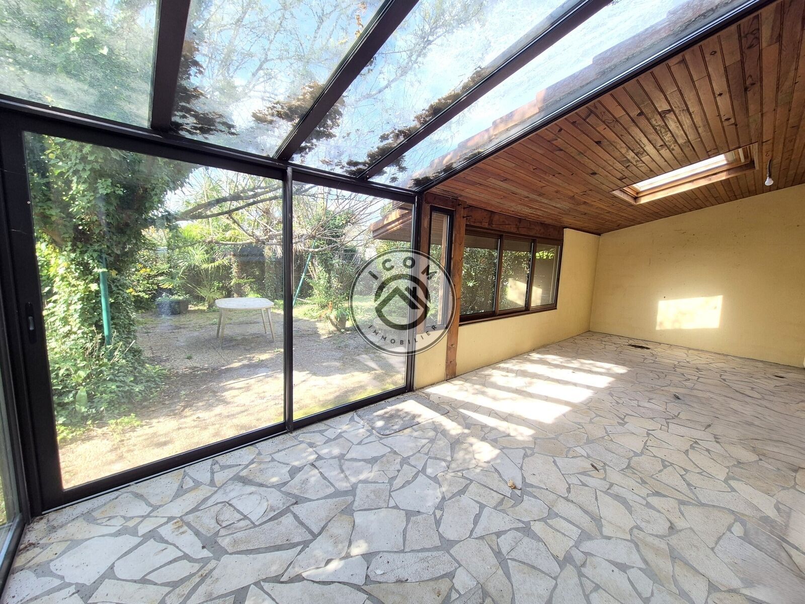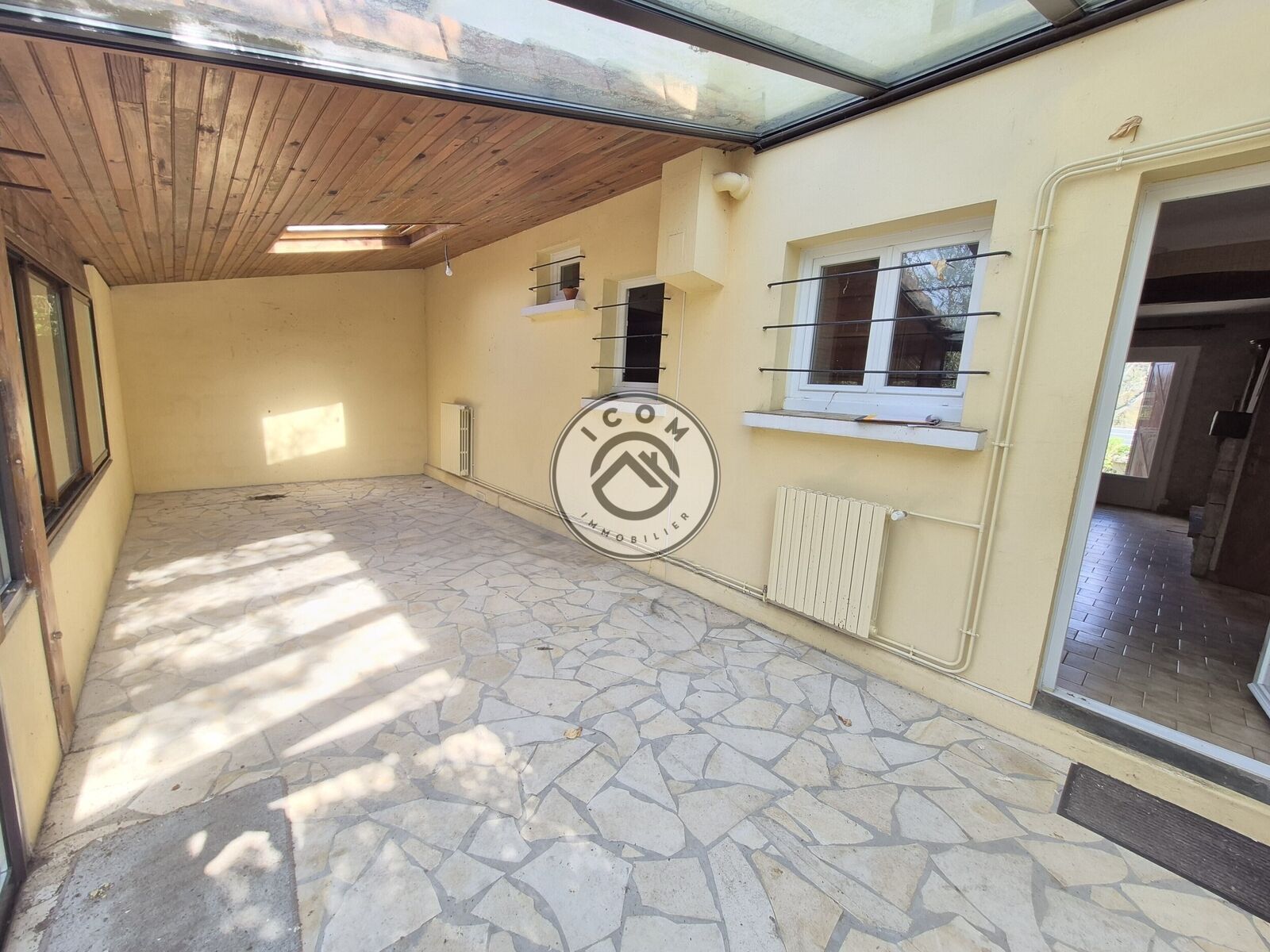 Le séjour agrémenté d’un insert bois, apporte du cachet à l’ensemble. La cuisine ouverte, prolongée par une véranda de 25 m2, s’ouvre directement sur un grand jardin à l’arrière, parfait pour profiter de moments conviviaux en toute intimité.